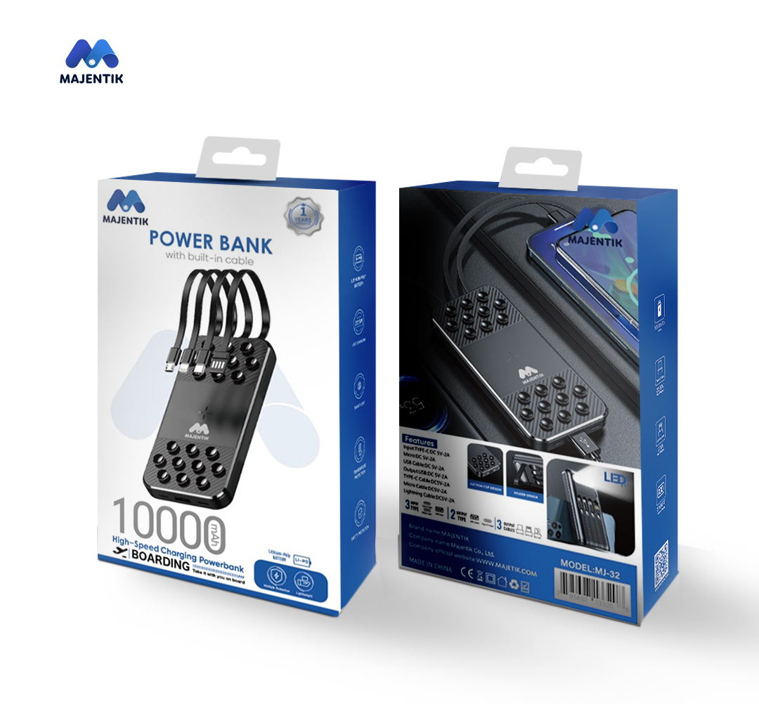 استمتع بحرية الشحن أينما كنت مع الباور بانك المغناطيسي 3-في-1 بسعة 10000mAh. الكؤوس الشفاطة تثبّت هاتفك بإحكام أثناء الشحن والحركة، بينما الأربعة كابلات المدمجة (Type-C، Micro-USB، Lightning، USB) تغنيك عن حمل أي أسلاك إضافية وتشحن أغلب أجهزتك بسهولة. يدعم شحنًا سريعًا حتى 2.1A* ويستطيع تشغيل حتى 4 أجهزة في الوقت نفسه، مع شاشة LED رقمية تعرض النسبة المتبقية بدقة. تصميم نحيف وخفيف مع نظام حماية ذكي ضد الشحن الزائد، التيار العالي وارتفاع الحرارة—حل عملي للسفر والعمل والمشاوير اليومية.